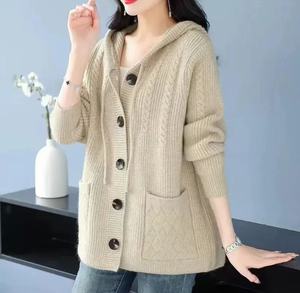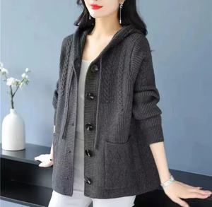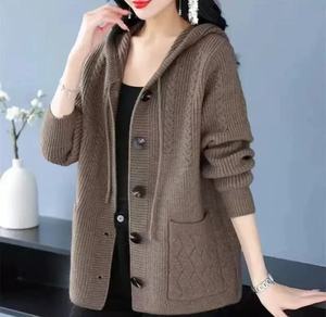 韩系毛衣外套女秋冬新款宽松女式女装连帽加绒针织衫外搭上衣