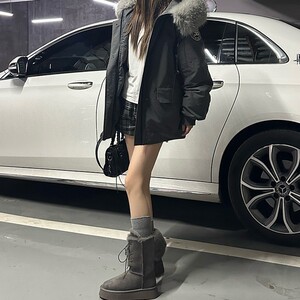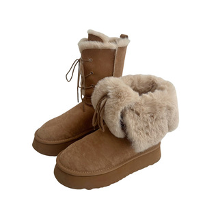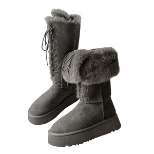长白山灰色雪地靴女2025新冬季系带两穿长筒靴加绒加厚保暖棉鞋