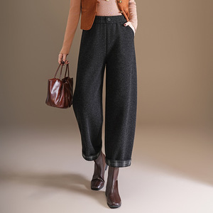 2025新款高腰显瘦毛呢阔腿裤女秋冬加绒加厚时尚休闲垂感直筒裤子
