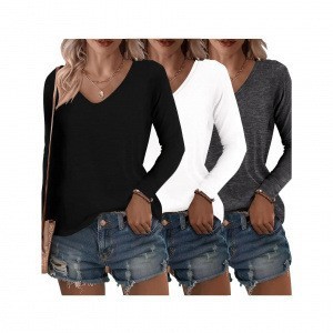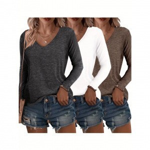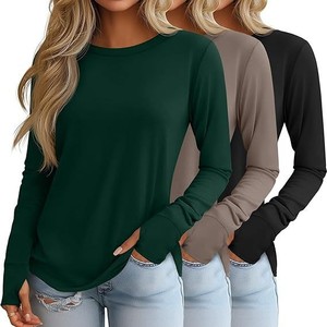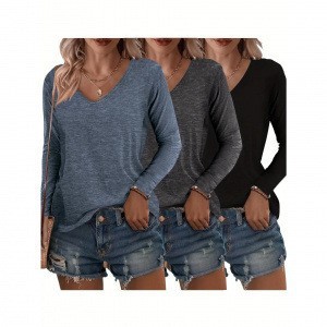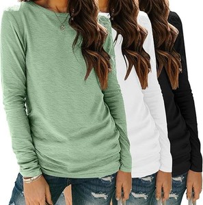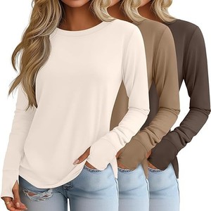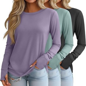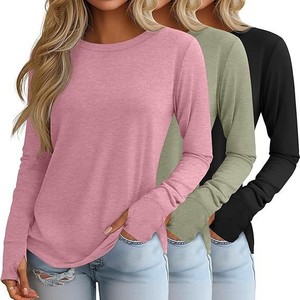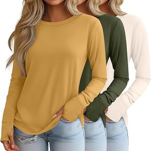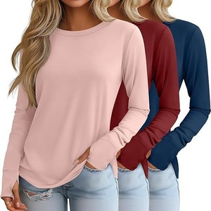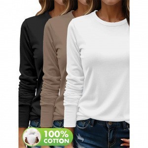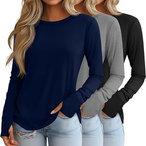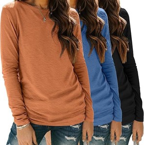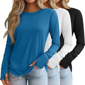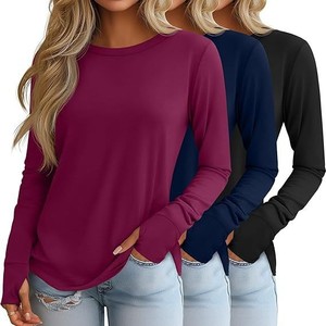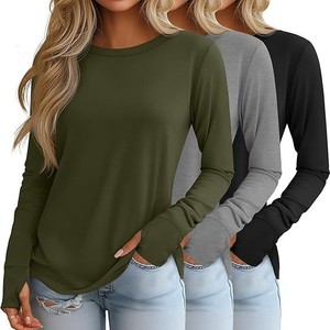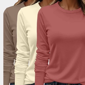 欧美跨境秋冬女装休闲百搭 长袖棉质柔顺内外穿圆领T恤3D数码印花