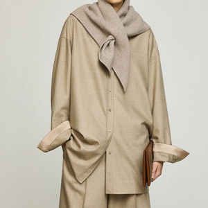 开黑标/意大利荃法兰绒 真丝贴边茧型衬衫中裤2025秋季新款休