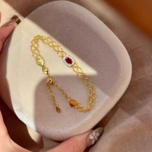 中古风金色蕾丝红色方糖手链轻奢气质高级感精致优雅百搭手环手饰