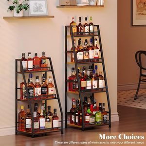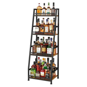 四层单边梯形酒架美式复古铁木红酒架多用途厨房置物架葡萄酒架