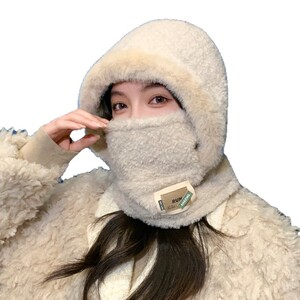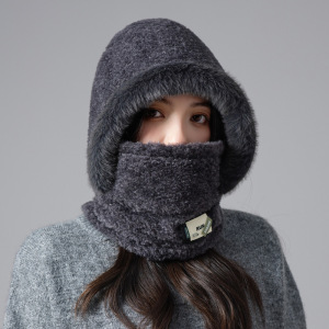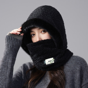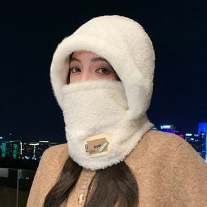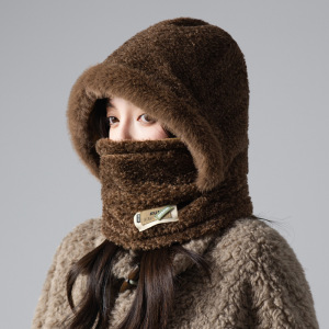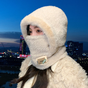 冬季帽子女韩版可爱毛绒包头帽口罩围脖一体帽加厚保暖百搭毛线帽