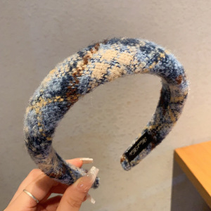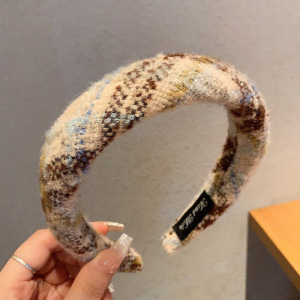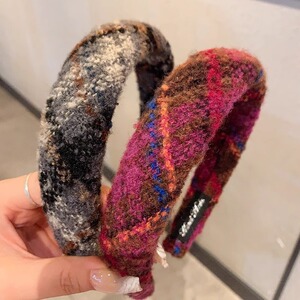 高级感秋冬新款毛呢格纹发箍韩国时尚高颅顶海绵头箍压发发卡头饰
