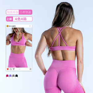 新款健身瑜伽背心女美背细肩带速干内衣防震防下垂带胸垫运动文胸
