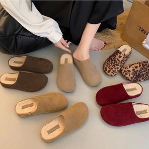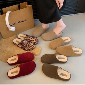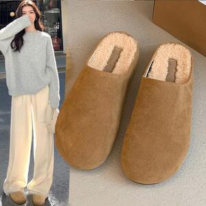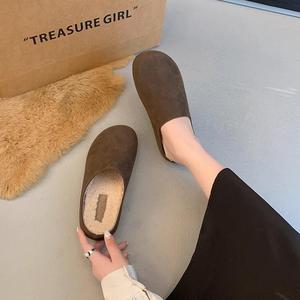 厚底勃肯鞋加绒包头半拖鞋女外穿2025新款秋冬季一脚蹬博肯棉拖鞋