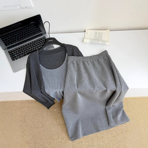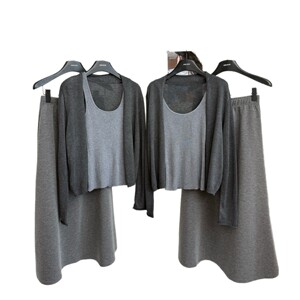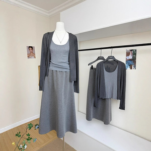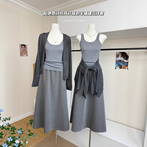 气质简约风纯色松弛感针织开衫+背心+半身裙三件套2025秋季新款