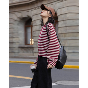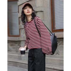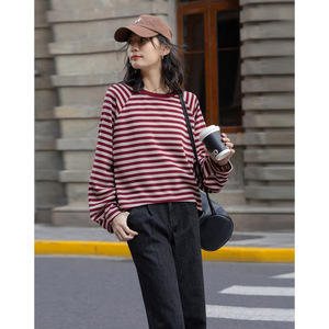 城市平行线秋季复古撞色条纹圆领上衣宽松遮肉舒适好搭女卫衣