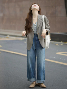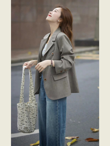 复古通勤廓形西装外套女春秋新款设计感休闲感气质简约小西装2025