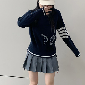 25秋冬新品TB女士羊毛嵌花大雁四条纹休闲圆领套头打底针织衫毛衣