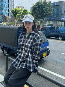 韩代明星同款经典格子衬衫男女同款宽松百搭中长款磨毛情侣外套