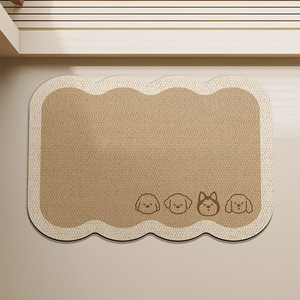 可爱小狗吸水地垫浴室卫生间简约防滑垫子异形卡通亚麻硅藻泥地毯