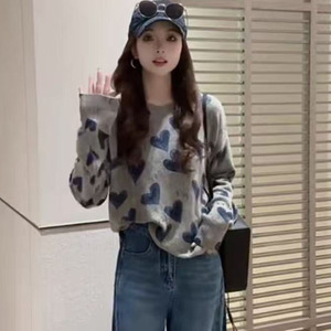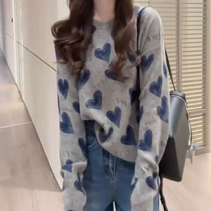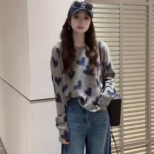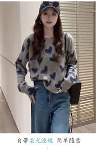 秋冬季新款高级感软糯法式复古松弛慵懒撞色长袖针织衫上衣