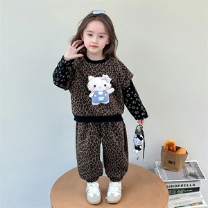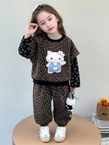 儿童春秋款套装 女童可爱卫衣两件套 宝宝豹纹假两件长袖休闲套装