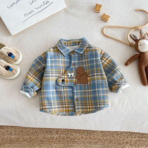 儿童加绒衬衫0-5岁冬季男童时尚卡通衬衣男宝宝洋气格子上衣AY706