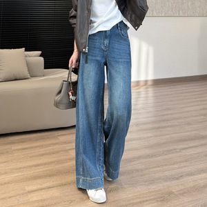 自带气场特垂顺宽边阔腿裤!秋季新侧缝前移气质莱赛尔牛仔长裤女