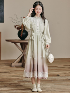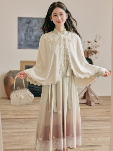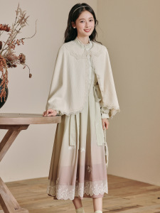 新中式改良版蕾丝拼接旗袍刺绣立领连衣裙娃娃领斗篷国风两件套