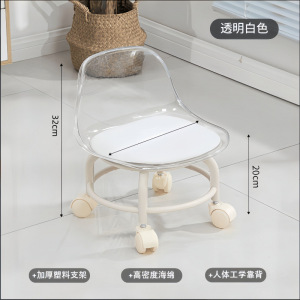 德国滑轮矮凳亚克力万向轮家用静音小凳子靠背椅儿童板凳换鞋凳子