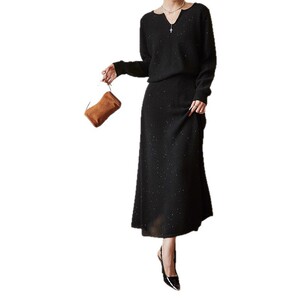 现货厂家批发 2025新款 针织套装 新款通勤毛衣半身裙两件套女