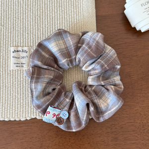 秋季新款韩版学院风纽扣大肠发圈格纹三色布艺方巾新款高级感头绳