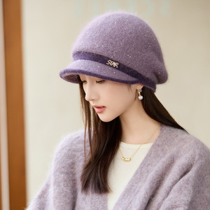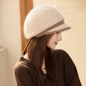 冬季帽子女气质高级感妈妈帽加厚保暖防风针织帽大帽檐显脸小盆帽