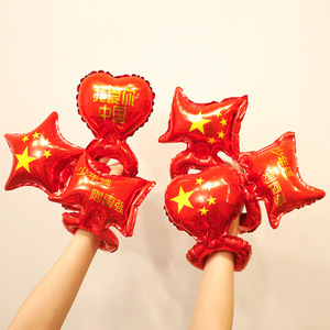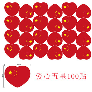 国庆节氛围装饰我爱中国贴纸五角星爱心脸贴手贴手摇红旗助威道具
