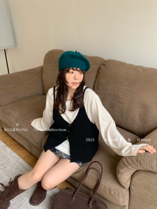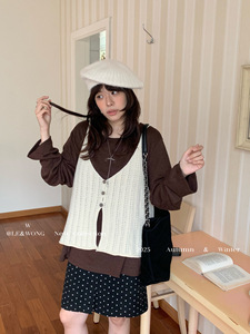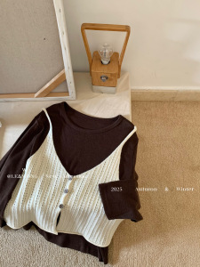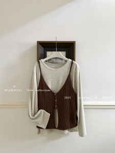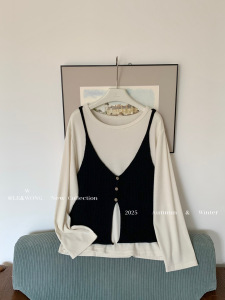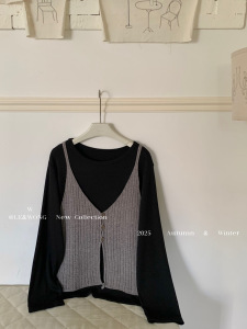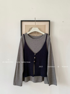 W家 休闲套装女长袖t恤吊带背心2025秋季新款大码胖mm穿搭两件套