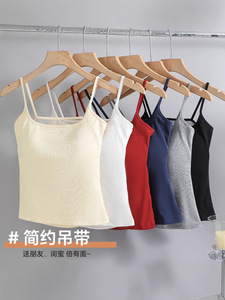 新款棉质吊带背心女网纱美背带胸垫修身内搭外穿辣妹打底抹胸上衣