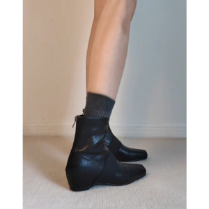 羊皮版~法式复古方头内增高瘦瘦靴女时尚简约黑色百搭短靴马丁靴