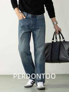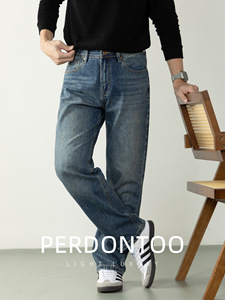 复古休闲风 | 做旧水洗蓝色微阔牛仔裤男款秋冬季显瘦舒适长裤子