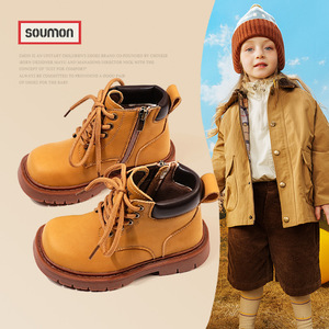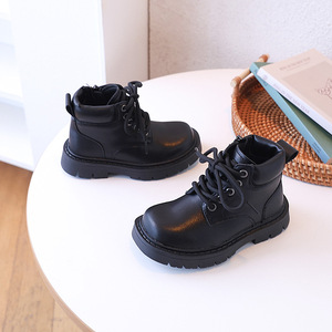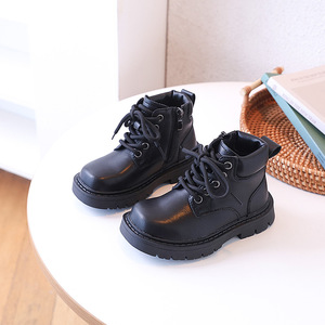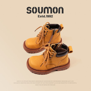 儿童皮靴2025新款秋冬小女孩英伦风马丁靴男童短靴软底大黄靴