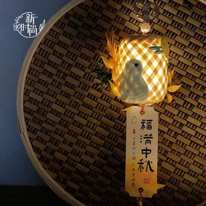 中秋节竹编手工小灯笼编织兔子圆形国风儿童手提灯笼花艺装饰材料