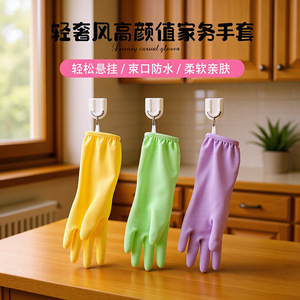 家务洗碗手套女厨房加厚耐用清洁干活保暖防水家用洗衣橡胶手套