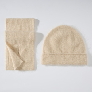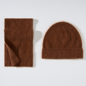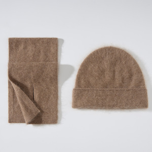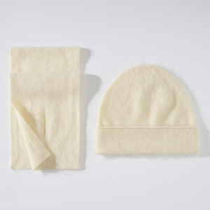 丝羊绒拉毛拉绒帽子围巾二件套秋冬新款针织套装皮草风跨境现货
