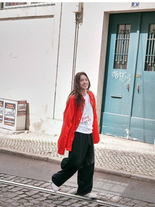 秋季新款韩版百搭时尚经典红色衬衫宽松外套潮流女款气质上衣外套