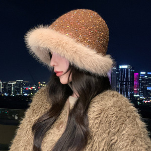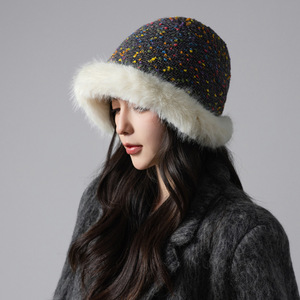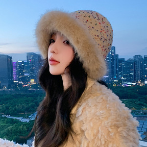 冬季帽子女七彩针织毛线帽加厚保暖蒙古帽大头围显脸小百搭毛绒帽