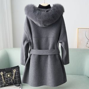 少量服饰秋冬季100%羊毛狐狸毛领双面呢大衣2025新品连帽呢外套女