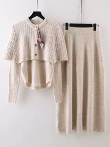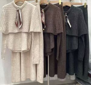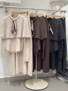 法式2025秋冬新款女装高端可拆卸毛衣披肩斗篷针织打底衫三件套