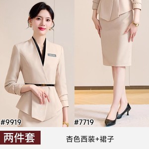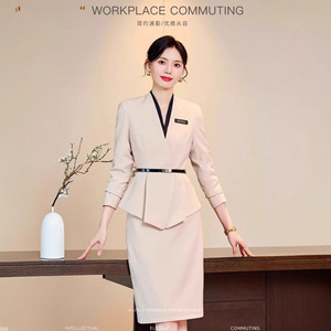 空姐职业套装女酒店前台高级会所接待工作服高端气质西装杏色制服