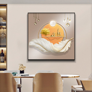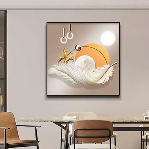 福鹿轻奢晶瓷装饰画简约挂画客厅高级感背景墙壁画玄关走廊过道