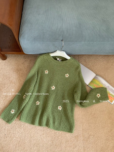 W家 慵懒少女感彩色小花朵撞色毛衣2025新款针织衫打底衫衣女秋冬