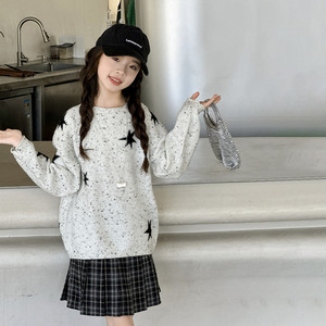 女童秋装星星毛衣2025中大童彩点针织衫儿童装早秋长袖百褶裙套装