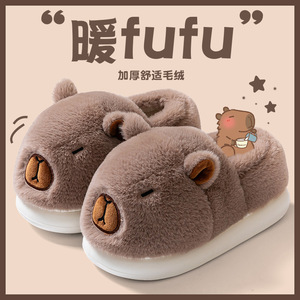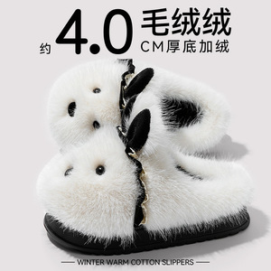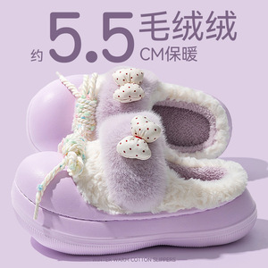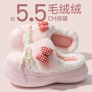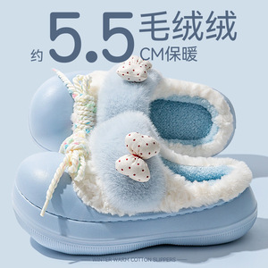 毛毛拖鞋女士冬季新款室内家用可爱蝴蝶结棉拖鞋加绒保暖厚底防滑