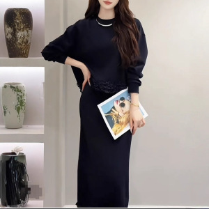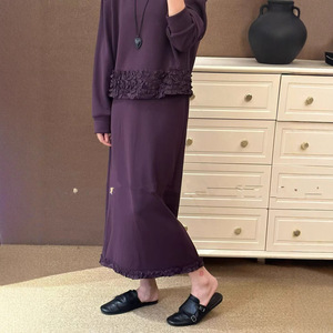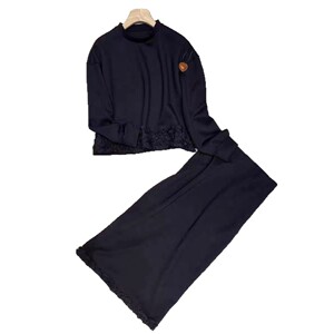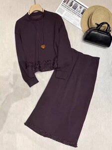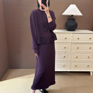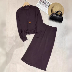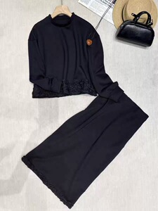 2025新款羊毛空气棉天丝花边套装圆领上衣+简约半身裙时尚两件套
