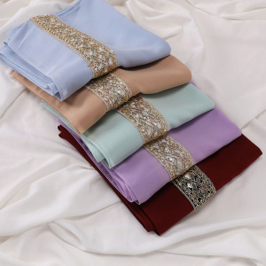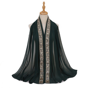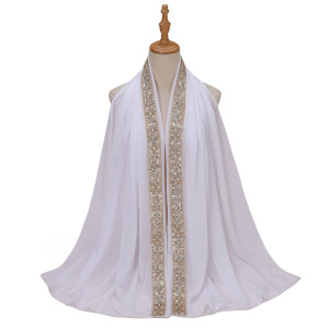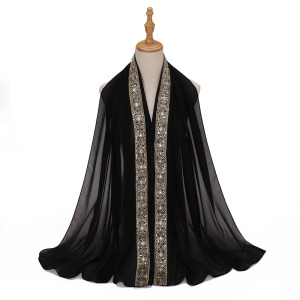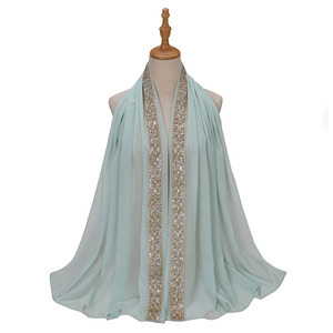 新款珍珠雪纺绣花亮片装饰包裹头巾 马来印尼时尚花边女士纱巾