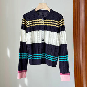女早秋撞色条纹针织开衫 百搭韩系拼色麻花开衫 2色 批发 0.27kg