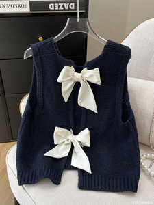 设计感蝴蝶结短款针织马甲背心女春秋新款韩版高级感无袖毛衣马夹