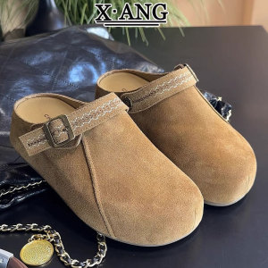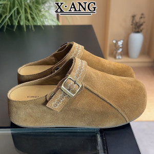 内增高厚底牛皮版勃肯鞋包头外穿半拖鞋2025秋季新款一脚蹬女鞋子