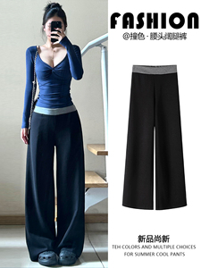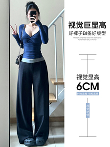 黑色美式运动裤女春秋夏2025新款高腰休闲宽松bf慵懒风直筒阔腿裤